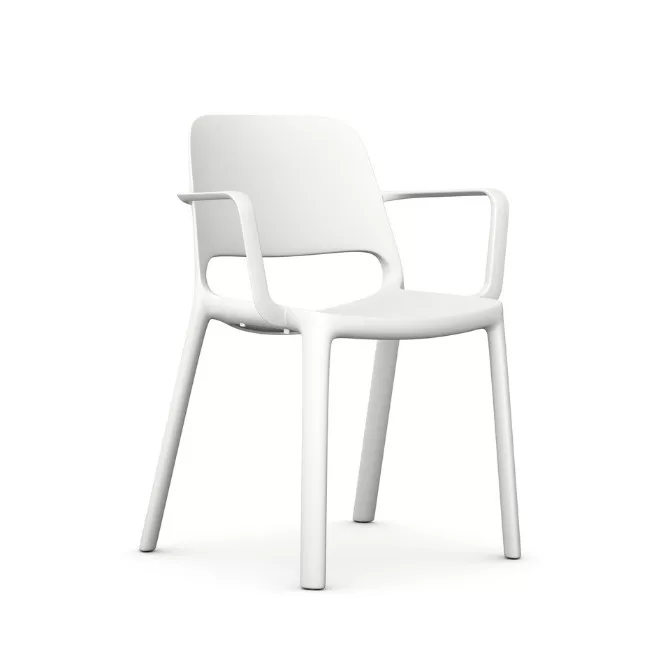 Ez a modell karfákkal egészül ki, amelyek nemcsak esztétikai szempontból hangsúlyosak, de kényelmi funkciót is betöltenek: extra támaszt nyújtanak hosszabb ülések során, legyen szó váróteremről, teraszról vagy tárgyalóról. A letisztult formavilág és az egydarabos kialakítás praktikumot is hordoz, hiszen a szék rakásolható, így helytakarékosan tárolható vagy szállítható – padlón akár öt, szállítókocsin tíz darab is egymásra helyezhető.