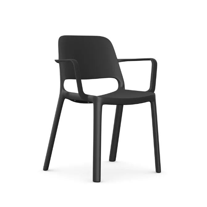 Ez a modell karfákkal egészül ki, amelyek nemcsak esztétikai szempontból hangsúlyosak, de kényelmi funkciót is betöltenek: extra támaszt nyújtanak hosszabb ülések során, legyen szó váróteremről, teraszról vagy tárgyalóról. A letisztult formavilág és az egydarabos kialakítás praktikumot is hordoz, hiszen a szék rakásolható, így helytakarékosan tárolható vagy szállítható – padlón akár öt, szállítókocsin tíz darab is egymásra helyezhető.