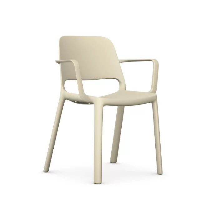 Ez a modell karfákkal egészül ki, amelyek nemcsak esztétikai szempontból hangsúlyosak, de kényelmi funkciót is betöltenek: extra támaszt nyújtanak hosszabb ülések során, legyen szó váróteremről, teraszról vagy tárgyalóról. A letisztult formavilág és az egydarabos kialakítás praktikumot is hordoz, hiszen a szék rakásolható, így helytakarékosan tárolható vagy szállítható – padlón akár öt, szállítókocsin tíz darab is egymásra helyezhető.