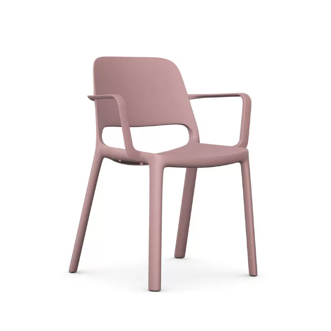 A PIXEL BR szék karfával monolitikus, egyetlen fröccsöntött elemből készül, UV-álló polipropilénből, így rendkívül tartós, könnyen tisztítható és kültéren is biztonsággal használható.