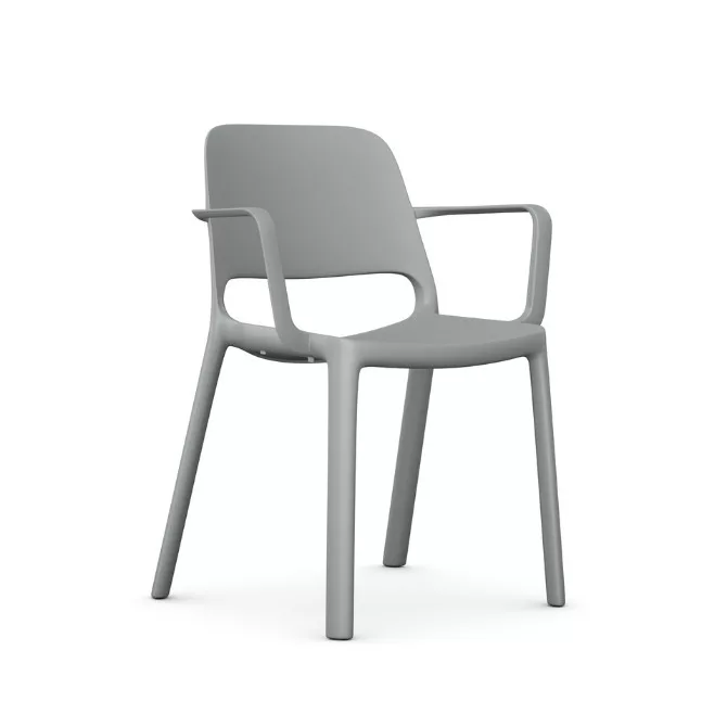 Ez a modell karfákkal egészül ki, amelyek nemcsak esztétikai szempontból hangsúlyosak, de kényelmi funkciót is betöltenek: extra támaszt nyújtanak hosszabb ülések során, legyen szó váróteremről, teraszról vagy tárgyalóról. A letisztult formavilág és az egydarabos kialakítás praktikumot is hordoz, hiszen a szék rakásolható, így helytakarékosan tárolható vagy szállítható – padlón akár öt, szállítókocsin tíz darab is egymásra helyezhető.