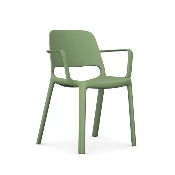 A PIXEL BR szék karfával monolitikus, egyetlen fröccsöntött elemből készül, UV-álló polipropilénből, így rendkívül tartós, könnyen tisztítható és kültéren is biztonsággal használható.